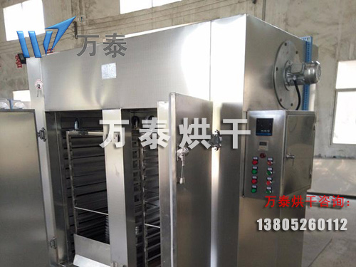 熱風烘干箱以蒸汽和電或煤炭為熱媒,利用高效加熱設備加熱,大量熱風在箱內(nèi)進行了熱風循環(huán),經(jīng)過不斷新風補充從進風口進入箱體,然后不斷從排濕口排出,這樣增加了傳熱效果,使箱內(nèi)物料水份逐漸減少,達到烘干效果。